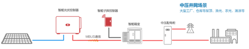 并網(wǎng)光伏發(fā)電系統(tǒng)是指太陽(yáng)能電池利用太陽(yáng)輻射能量產(chǎn)生的直流電(即太陽(yáng)電池的“光生伏特效應(yīng)”)通過并網(wǎng)光伏逆變器轉(zhuǎn)換成交流電向電網(wǎng)輸送的系統(tǒng),其本質(zhì)是利用太陽(yáng)能進(jìn)行發(fā)電的發(fā)電站。與煤、石油和天然氣等傳統(tǒng)能源進(jìn)行發(fā)電的發(fā)電站系統(tǒng)相比,并網(wǎng)光伏發(fā)電系統(tǒng)具有可再生、無污染等優(yōu)點(diǎn)。該光伏項(xiàng)目采用10kV等級(jí)高壓并網(wǎng)方式,光伏系統(tǒng)包含一套順特電氣自主制造的10kV等級(jí)4000kVA預(yù)裝式光伏升壓站、7160塊光伏組件、13組300kW大功率智能組串式光伏逆變器、一套10kV智能并網(wǎng)開關(guān)柜等組成,光伏組件通過光生伏特效應(yīng)產(chǎn)生電流,然后通過組串式逆變器進(jìn)行逆變,將直流電轉(zhuǎn)換為交流電,最后就地升壓至10kV接入電網(wǎng)。